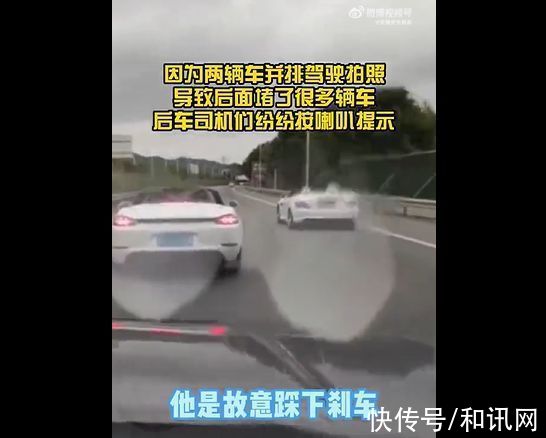 2月22日,海南三亚,凤凰机场高速出口约100米处,有司机丰先生就遇到了两台并行慢跑的保时捷跑车,更可气的是,两台车上的人竟然在相互拍照。