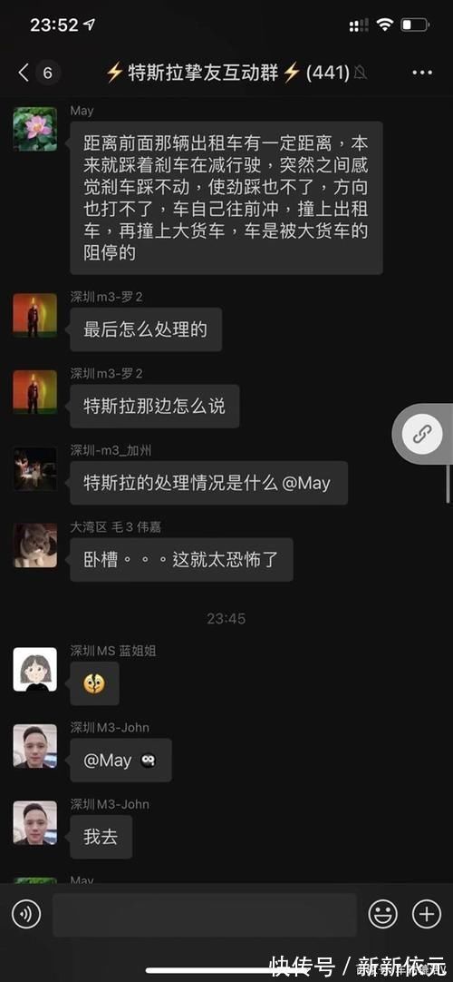 连撞两车的的特斯拉车头损毁严重。据车主May透露,自己的特斯拉突然之间刹车就失灵了,方向也打不了,车自己往前冲,撞上出租车再撞上大货车,才被大货车阻停了。