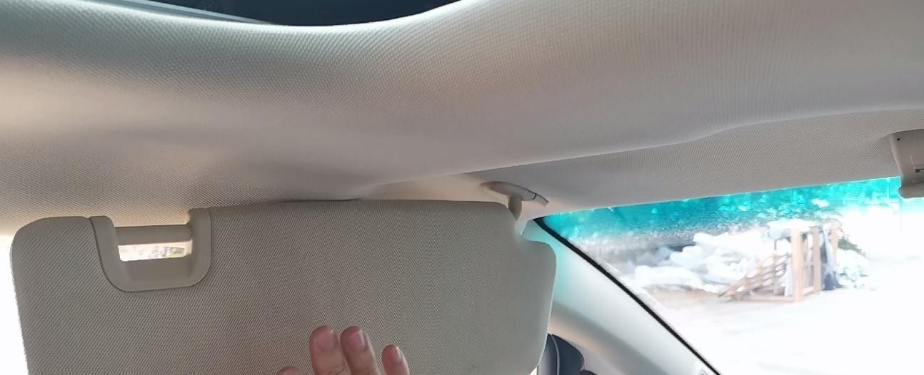 遮阳板大家一定不陌生,当光线过于耀眼时,就会将其向下翻下,但这样只能挡住从前档玻璃正面射入的阳光,如果其是从侧窗进来又该怎么办呢?现在小编就告诉大家,其实,遮阳板也是可以侧翻的,如上图所示,将遮阳板的一个脚脱出就能翻转了。