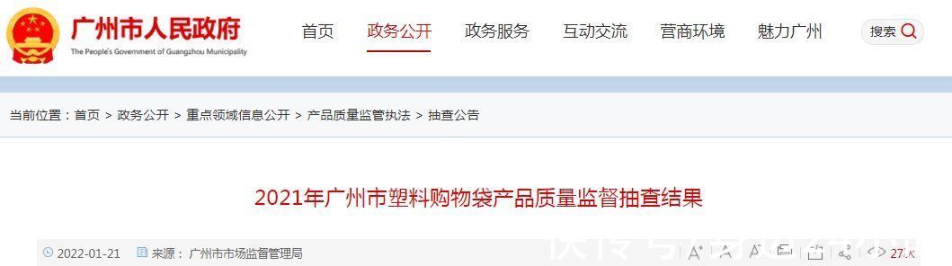 中国质量新闻网讯 2021年广州市市场监督管理局对塑料购物袋产品质量进行了监督抽查,共抽查了14批次样品,经检验,有7批次产品不符合标准要求。