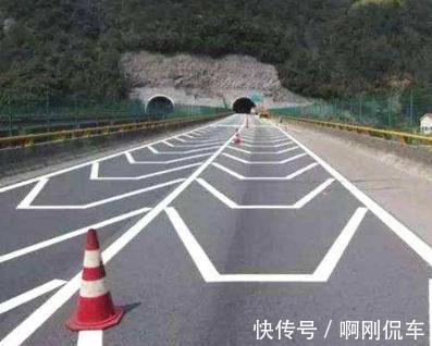 首先第一种就是错视觉标线,这种标线能够给人一种视觉上的错觉,让你感觉道路本身变窄了,或者变陡了,从而起到让你减速慢行的效果。这种标线在隧道前方200米的范围内出现的几率比较高,因为隧道光线暗,行车危险几率高,减速慢行才是最正确的操作。