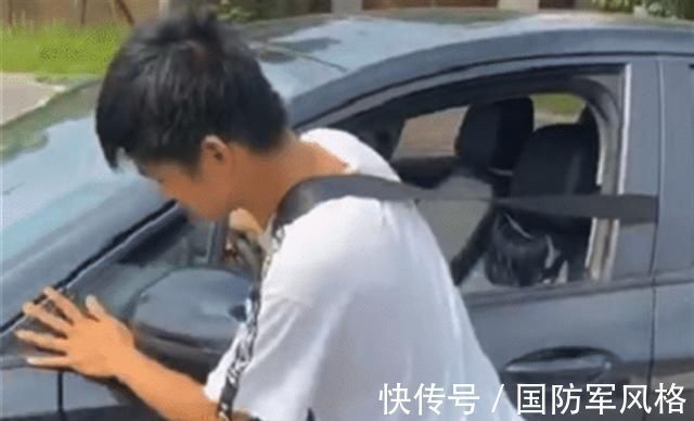 你可以把安全带拉到最长,然后把车门关上,把汽车挂空挡,把安全带往肩上一跨,然后推车,这样推车可以很省力,连女生都可以操作。同时右手还可以控制方向盘的方向不至于跑偏。