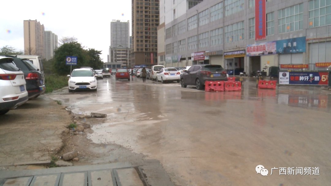 22日上午,记者在南宁市江南区天郡府小区附近一条两三百米长的道路上看到,这里停放的近60辆私家车,每一辆车至少有一个轮胎是没气的。