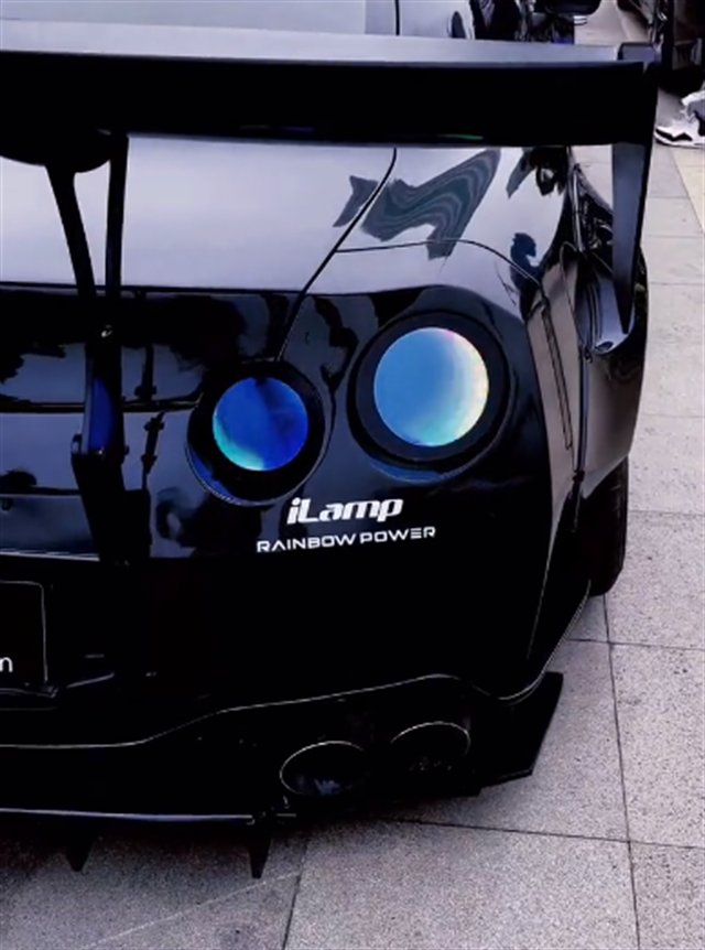 最近,在国外就有人拍摄了一台改装"深渊灯"的 GT-R,全车黑武士风格,还配气动避震和超大尾翼。