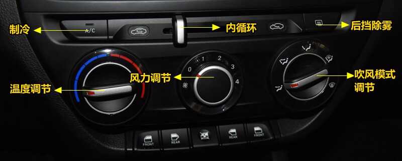 现代瑞纳空调采用的是机械按键,空调除雾以及暖风可以通过按键直接开启。