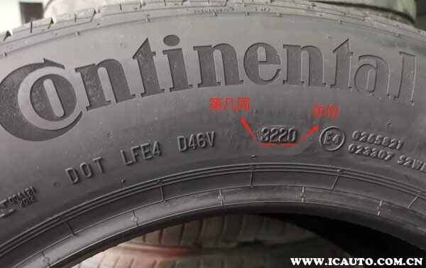 如图,轮胎上那串数字和字母的最后四位是3220,那可以知道轮胎是2020年的第32周生产的。也就是说,前面两位数字是轮胎的生产周期,后面两位数字是轮胎生产的具体年份。轮胎上的那串数字,除了生产日期以外,还有轮胎的具体参数,参数包括了轮胎的宽带、轮胎的速度等级等。