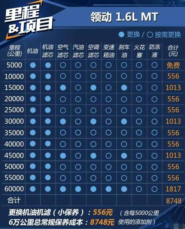 领动五万公里需要做个大保养,其中保养项目有更换空气格,空调格,发动机清洗保护,节气门清洗,喷油嘴清洗,更换机油、防冻液。