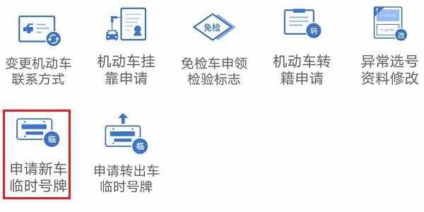 1、下载并登录"交管12123"APP,在首页选择"更多",然后在机动车业务栏中选择"申请新车临时号牌";