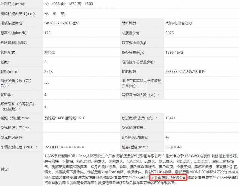 动力方面上述文章已经提到,值得注意的是储能方面新款蒙迪欧混动车型使用了比亚迪生产的镍钴锰酸锂电池,相信无论是在使用性还是安全性方面都能得到一定的保证。(撰文/车主指南)