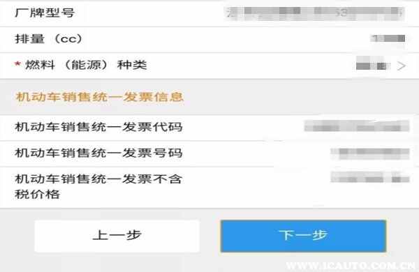 4、在申报页面中,你可以选择获取发票信息,并选择需要申报的发票信息。其中发票代码、发票号码和车辆识别代号会自动填写,当然你也可以手动填写后点击"下一步"。