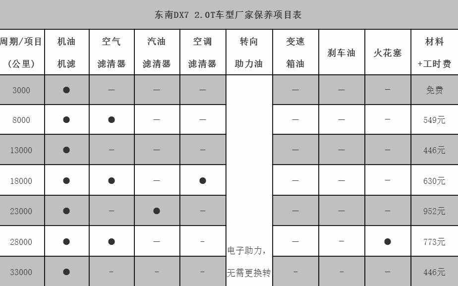 东南dx7第六次保养费用:东南dx7第六次保养费用为549元。东南dx7第二次保养项目为更换机油滤芯,更换空气滤清器。