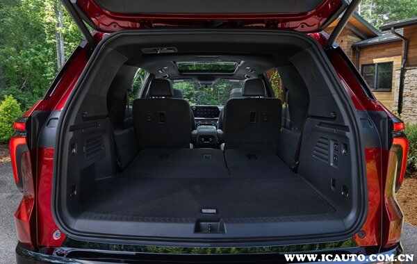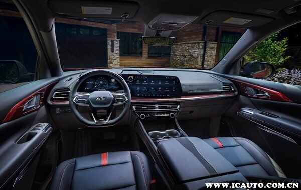 内饰方面,雪佛兰巡领者将配备大尺寸双联屏,车机内置VCS智能座舱和Super Cruise超级辅助驾驶系统,电子怀挡机构集成在三幅式多功能方向盘后方,空调出风口下方依旧保留部分实体按键,车内将提供7座和8座两种布局。