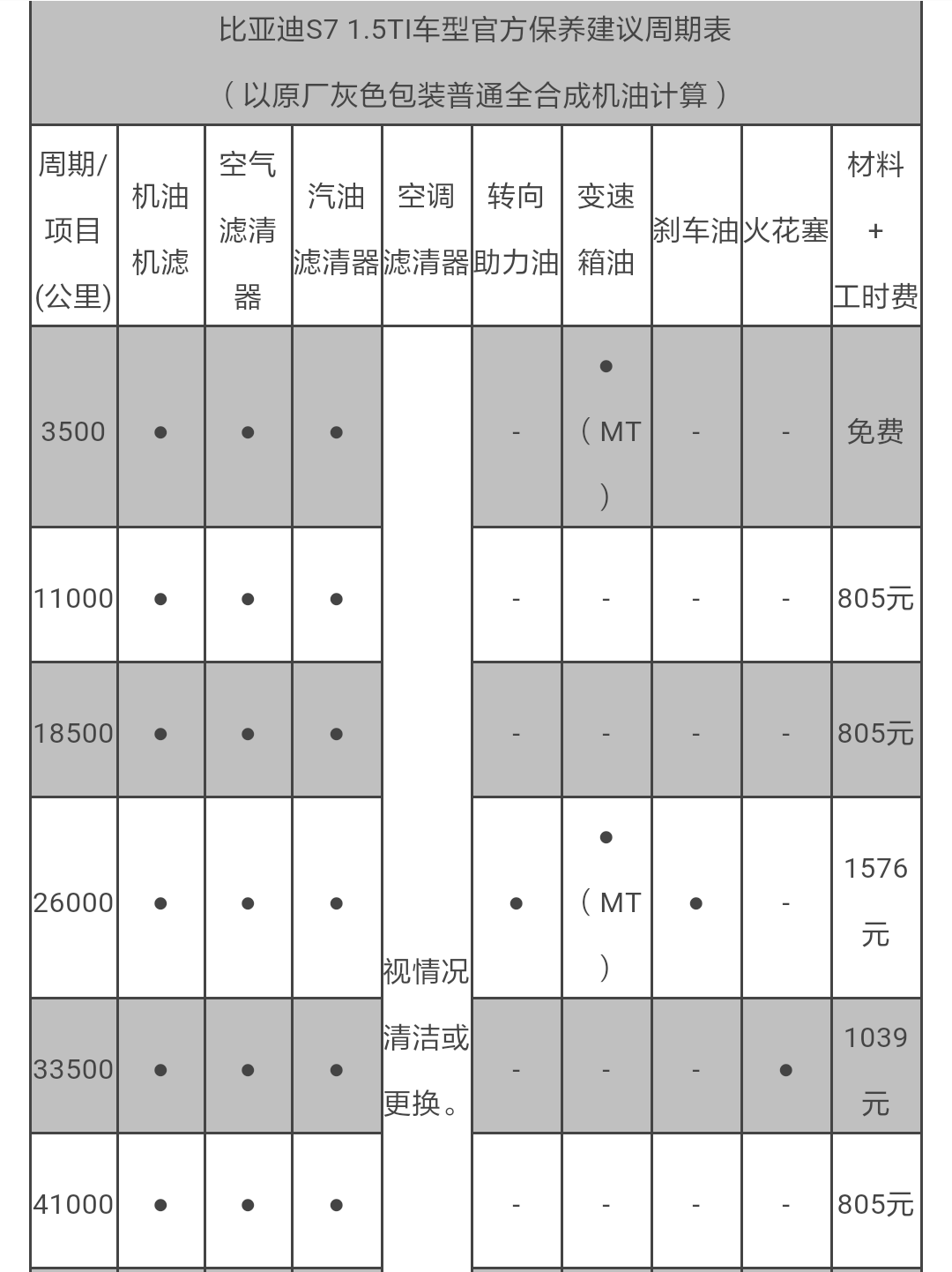 发动机正时链条免维护。按照保养手册的建议,S7的常规保养周期为首次保养在3500±500公里时进行,之后每7500公里进行一次;燃油滤清器和空气滤清器每次保养都需更换;空调滤清器视使用情况清洁或更换;转向助力油和刹车油首次更换在26000公里时进行,之后每22500公里更换一次;火花塞每33500公里更换一次。
