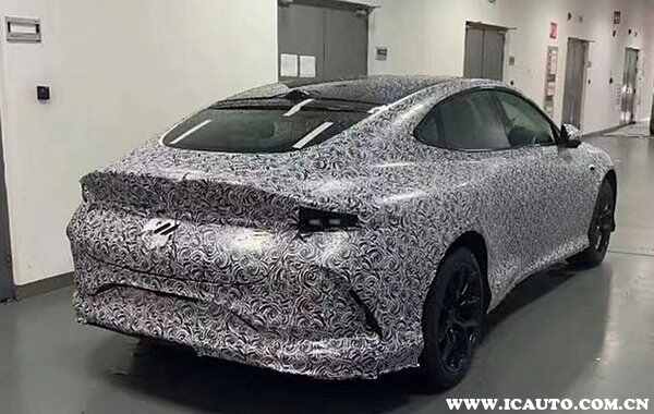 此外,像隐藏式门把手、低风阻轮毂、溜背式设计等元素也没有缺席,车顶线条平滑过渡至车尾并形成一个小鸭尾,预计将继续采用贯穿式尾灯,车尾造型整体与智己L7相似,同样有着阿斯顿马丁DBX的身影。