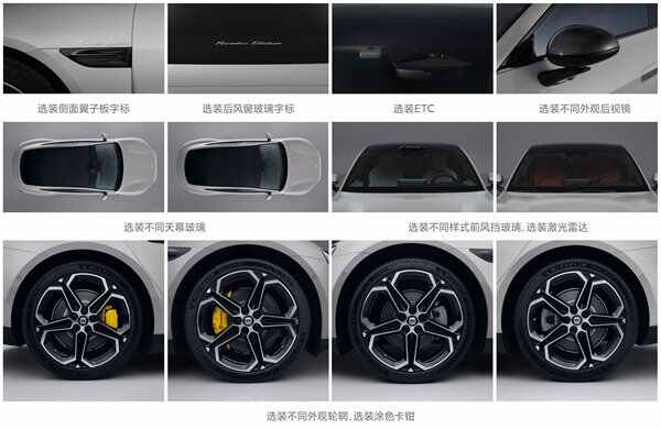 值得一提的是,小米SU7在外观上还提供了丰富的选装件,用户可以根据需求选择安装车身侧面翼子板字标、后风窗玻璃字标、不同外观样式的外后视镜、不同类型的天窗玻璃、不同样式的前挡风玻璃、黄色刹车卡钳以及多种样式的轮毂。配置方面,可选装ETC和激光雷达。