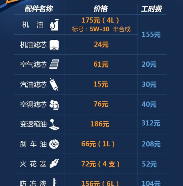 更换机油机滤,进行小保养需要354元。6万公里总常规保养成本为5676元