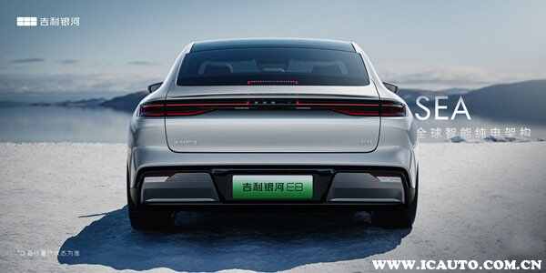 车身侧面呈现出典型的轿跑姿态,采用了流行的隐藏式门把手和溜背式设计。从B柱开始,车顶线条逐渐下滑并向尾部上扬,形成小巧的鸭尾设计。车尾配备了细长的“伪”贯穿式尾灯,其中间被吉利银河的车标LOGO截断。
