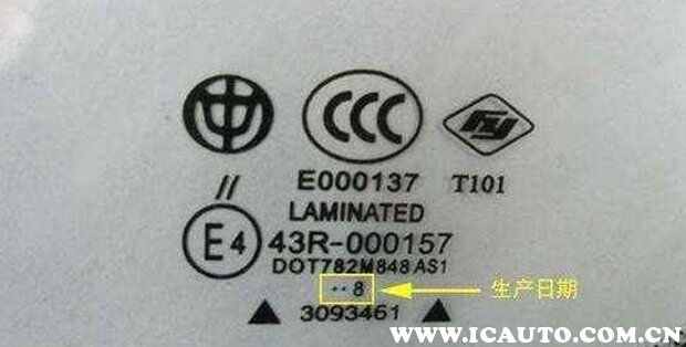 4、留意玻璃上面的生产日期,通过数字和点的位置,可以判断出车窗玻璃的生产年份;