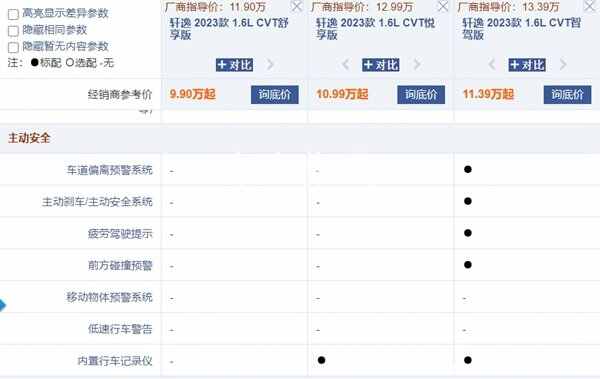 2、车辆安全性问题:轩逸的低配版车型虽然有着不错的被动安全配置,但是在主动安全方面,缺乏了主流的车道偏离预警、主动刹车/主动安全系统、疲劳驾驶提示、前方碰撞预警等功能,有着不少提升空间。
