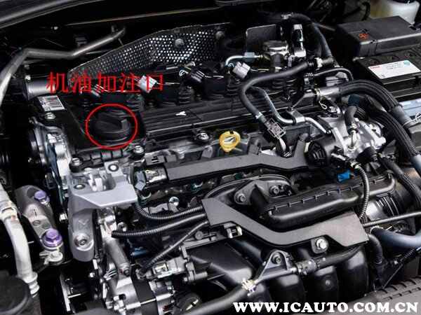 奕泽机油加4.6L左右,加注口位于发动机上面,有一个黑色的盖子,盖子上有机油图案。具体位置图示如下: