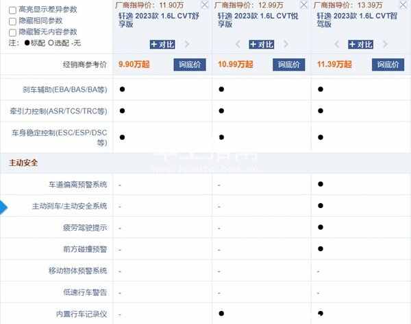 此外,轩逸的低配版车型没有车道偏离预警、疲劳驾驶提示、碰撞预警、前方移动物体预警、车道保持、导航等功能,在跑高速时车辆安全性有点低。特别是其中的疲劳驾驶提醒、车道保持、车道偏离预警等,对于需要跑高速的车主里说是非常重要的安全保障。