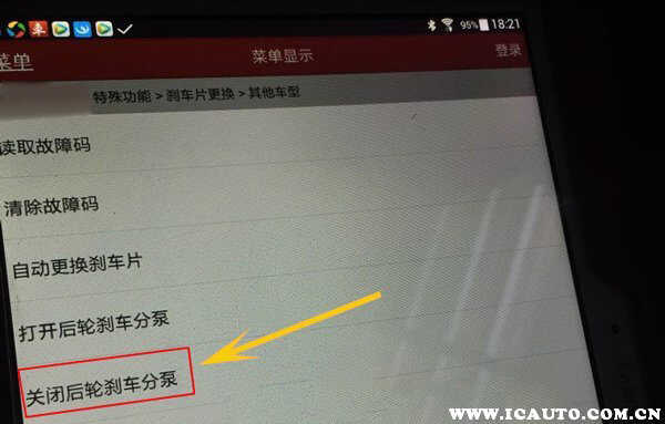 ④新刹车片安装好后,重新用电脑设置【关闭后轮刹车分泵】,五秒左右,驻车制动电机弹出复位。