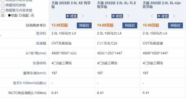 从配置上看,目前2022款天籁的动力系统为2.0L发动机+CVT无极变速箱,发动机最大马力为156匹。而凯美瑞也是2.0L发动机+CVT无极变速箱,但是发动机最大马力是177匹,比天籁要强劲一些,同时CVT变速箱也更加先进,车辆的百公里油耗测试数据要比天籁好。