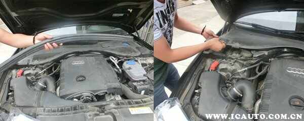 ①卡槽处有防水胶条,先行取下,接着找到固定卡扣,并取下塑料盖板。