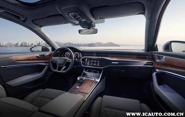 进入车内,作为一款豪华品牌的C级轿车,奥迪A6L的座舱采用了大量真皮材料进行包裹,并通过木纹饰板提升了档次感。新车延续了虚拟座舱设计理念,配置了全液晶仪表、内嵌式中控屏和空调座椅控制屏。中央区域保留了游艇式换挡杆和一些实体按键。
