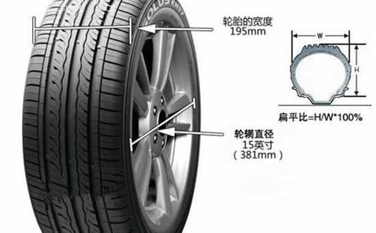 如规格为205/60R15的轮胎,表示其横断面的最大宽度是205毫米,扁平比为60%,内径为15英寸。