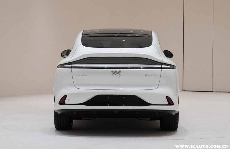 在智己LS6的后方,可以看到它设计了一个上翘的“鸭尾”,并且还有着一个造型复杂的贯穿式尾灯组,整体造型充满了未来科技感。尺寸方面,智己LS6的长宽高为4904/1988/1669mm,轴距为2950mm。
