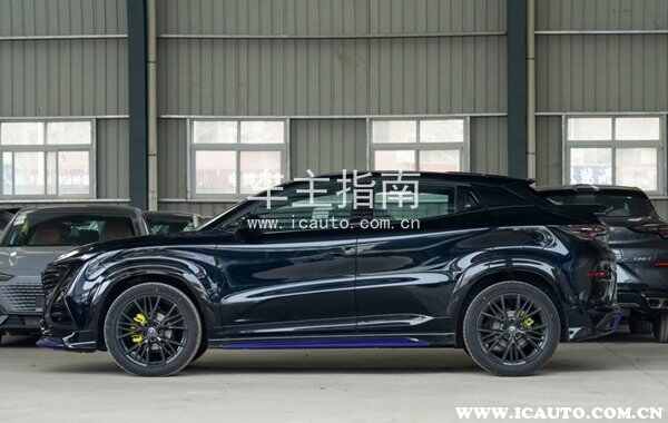车身紧凑低矮,散发出强烈的轿跑运动感,再加上大尺寸的20英寸轮毂和黄色刹车卡钳,使其更显运动风格。此外,尾部双层扰流板和夸张的运动后包围也进一步强化了其运动元素,让整车呈现出一种高性能的氛围。
