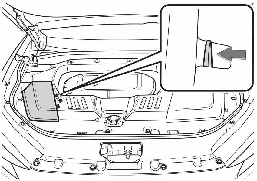 2.拆下盖板后,即可看到溢水罐。(冷却液中掺有乙二醇,可降低冷却液的冻结温度。请勿随意排放,否则会造成水质污染。)