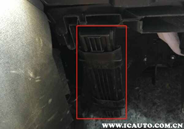 找到空调滤芯盖,可推动空调滤芯盖上的滑动片(上下滑动片向内推动),滑动过程中稍微向上用力,这样便于固定卡滑动,滑动到中间限位点后,挡板上固定卡和空调系统脱离,此时就可以把空调滤芯挡板拿来了,随挡板被拿开,滤芯槽里旧空调滤芯便露了出来。