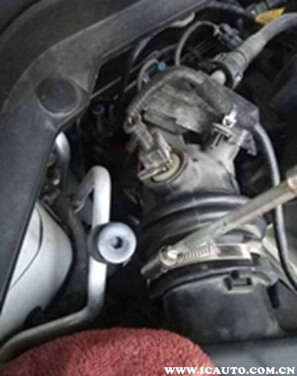 2、拆开后,可使用布塞在进气管上以防止灰尘进入发动机缸体内。