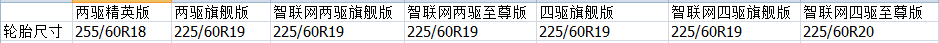 荣威RX8的定型为中大型SUV,其精英版采用的轮胎规格为255/60 R18;旗舰版以及两驱至尊版采用更大的19英寸轮胎;而四驱至尊版则达到20英寸。