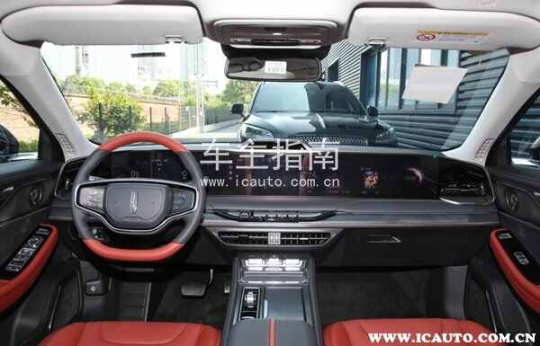 内饰迎合了当前更注重科技的设计趋势,与过去更偏成熟的美式豪华路线相比有所不同。车内中控台采用了叠层化立体设计,几乎被27英寸的中控屏和12.3英寸的仪表完全占据,给人一种现代感十足的视觉享受。同时,屏幕两侧的拐角造型还为车内增加了一些环抱效果,营造出舒适的驾乘氛围。