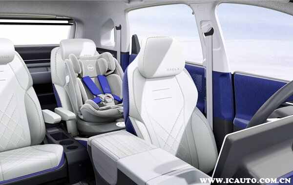 后排配备了电动儿童安全座椅,并且这套安全座椅还具有迎宾功能,当妈妈抱着宝宝上车时,只需将脚踩在地面感应位置上,车门和儿童座椅会智能开启,方便妈妈抱孩子上车。