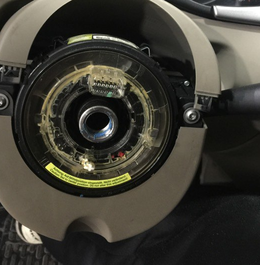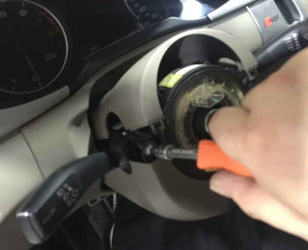 露出方向盘固定螺丝,使用装用工具。