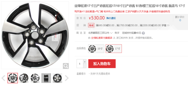 日产逍客原厂17寸轮毂网上售价是530元。逍客采用普利司通泰然者系列轮胎,规格为215/55 R18,此次3个配置的测试车在外型上几乎鲜有差异,同样的前后灯组、同样的18英寸轮圈,看起来都不错。。逍客的这三款高配车型配备了规格为215/60 R17的普利司通DUELER H/P Sports轮胎,大概在1200~1500左右。不过在低配车方面,逍客采用的是规格为215/65 R16的韩泰OPTIMO K415轮胎,价格上要便宜不少。此外,17寸五辐铝合金轮毂也是也是逍客顶配车型的标识之一。虽然没有多大的实际用处,但是视觉效果的确要更好一些。尺寸为215/60 R17的普利司通DUELER动力侠轮胎更加注重公路的静音效果,不过60的扁平比还是容易让人对它抱有一点越野的幻想。
