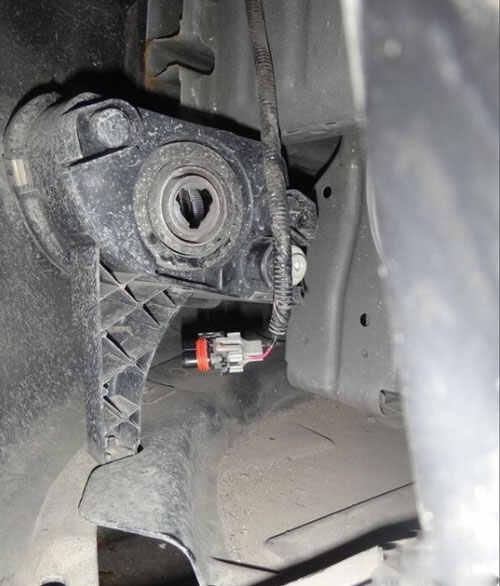 3.从图里面看,雾灯就在那里了,下面是电源接口,撬开接口边上的卡扣,就能把电源接口卸下来,然后沿逆时针旋转雾灯,就可以把雾灯也拿下来,如图