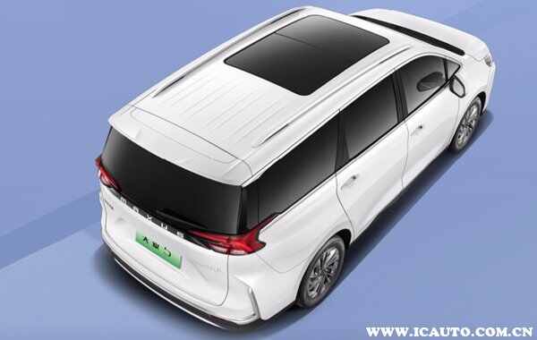 尽管大家MIFA5是一款MPV车型,但并没有采用后侧滑门设计。不过,车身的侧面通过黑色处理的B/C/D柱以及后排隐私玻璃创造出了悬浮式车顶的视觉效果。车尾造型方正扁平,配备了分体式尾灯、高位刹车灯以及后雨刮器。