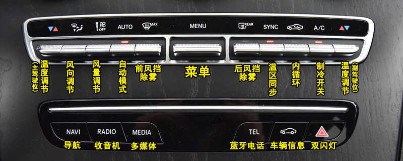 奔驰GLC 260L空调采用的是机械按键,空调除雾以及暖风可以通过按键直接开启。