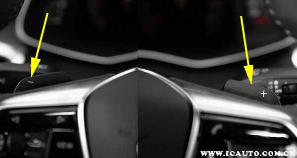 刹车踏板先踩死,换入“D”档,而往右边推动档位把手。此时开始,就能通过换挡拨片“+”升档,“-”降档。手动模式虽然繁琐一些,不过可以精确控制合适转速与扭矩时的档位切换。