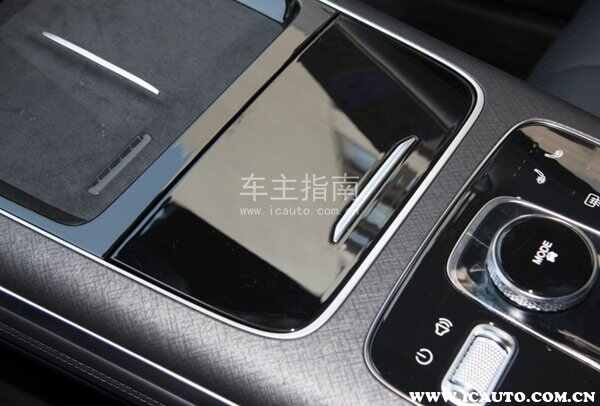 3、扶手区域上有一个手机无线充电区域,可以方便地给手机充电。此外,中央的水晶旋钮设计也增添了豪华感,音量调节按键采用滚轮式设计,触感高级。