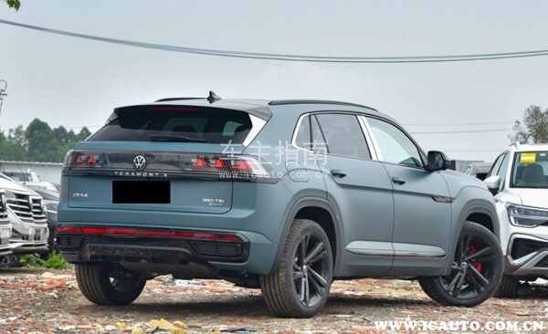途昂X的外观设计非常注重年轻化和现代感。它摒弃了过多的镀铬饰条,采用大众R-Line熏黑套件来替代,使整体外观更加时尚。细节上,车身侧面展现出硬朗的风格,并通过黑化处理增添了一份神秘感。21英寸的黑色轮圈搭配红色刹车卡钳,进一步凸显了动感与运动性能。