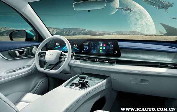 内饰方面,新车采用了三辐平底方向盘,并搭载了12.3英寸曲面双联屏,使用雄狮Lion车机系统,座舱内还大量使用金属装饰件,进一步提升了豪华感。