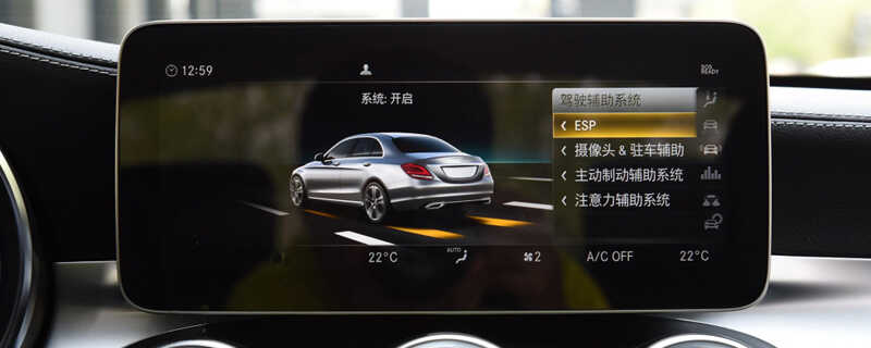 奔驰C200L ESP功能在中控屏“驾驶辅助系统”选项里面设置。车辆默认是开启ESP功能的,按下该按钮关闭功能。