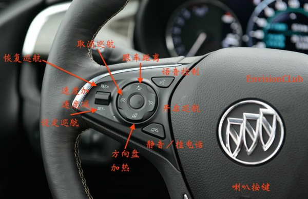 别克昂科威方向盘按键标志功能介绍如下图所示: