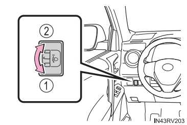 可根据乘客人数及车辆的负载状况调节大灯光束高度。如下图,往上滚动滚轮为升高大灯光束高度,向下滚动滚轮为降低大灯光束高度。